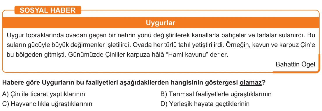 📝6. Sınıf Türkistan'da Kurulan İlk Türk Devletlerinin Medeniyetimize Katkıları Test 8