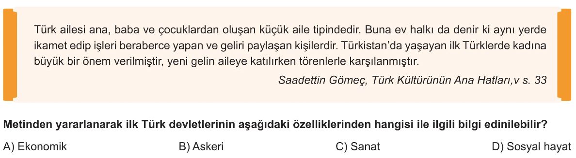 6. Sınıf Türkistan'da Kurulan İlk Türk Devletlerinin Medeniyetimize Katkıları Test 9