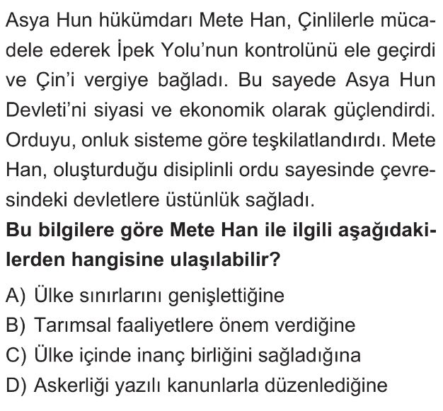 6. Sınıf Türkistan'da Kurulan İlk Türk Devletlerinin Medeniyetimize Katkıları Test 9