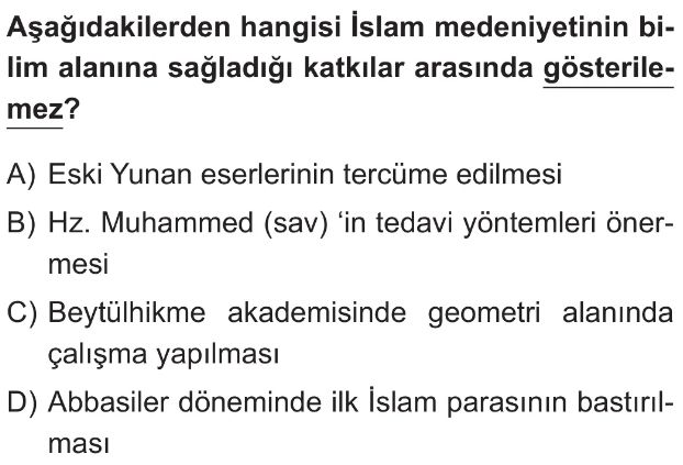 6. Sınıf VII-XIII. Yüzyıllar Arasında İslam Medeniyetinin İnsanlığın Ortak Mirasına Katkıları Test 1