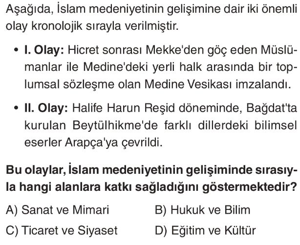 6. Sınıf VII-XIII. Yüzyıllar Arasında İslam Medeniyetinin İnsanlığın Ortak Mirasına Katkıları Test 2