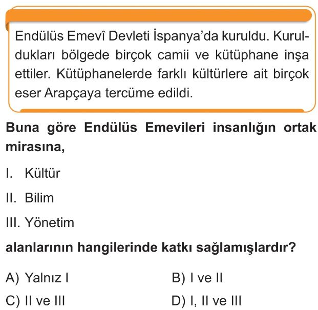 6. Sınıf VII-XIII. Yüzyıllar Arasında İslam Medeniyetinin İnsanlığın Ortak Mirasına Katkıları Test 2