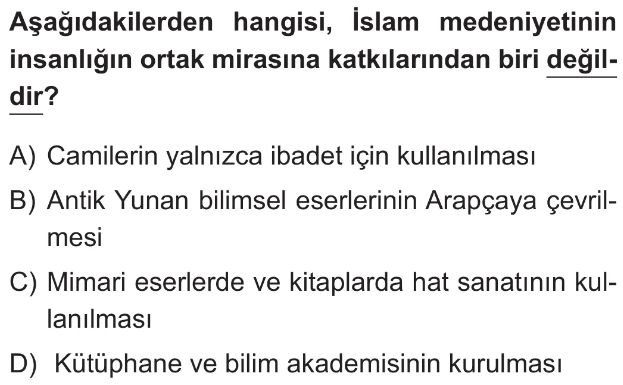 6. Sınıf VII-XIII. Yüzyıllar Arasında İslam Medeniyetinin İnsanlığın Ortak Mirasına Katkıları Test 2