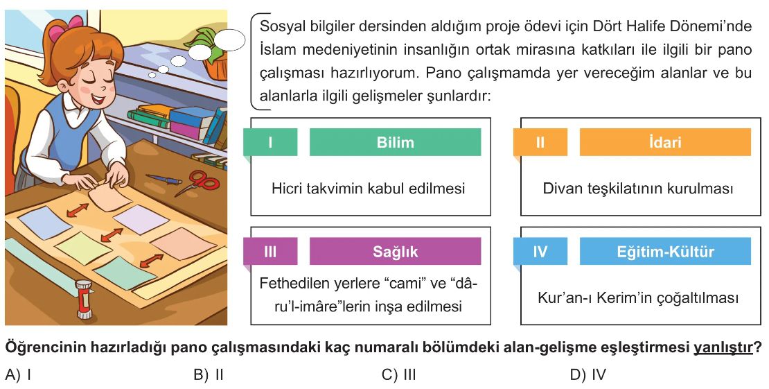 6. Sınıf VII-XIII. Yüzyıllar Arasında İslam Medeniyetinin İnsanlığın Ortak Mirasına Katkıları Test 4