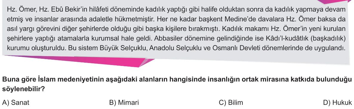 6. Sınıf VII-XIII. Yüzyıllar Arasında İslam Medeniyetinin İnsanlığın Ortak Mirasına Katkıları Test 4