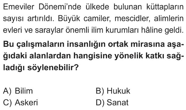 6. Sınıf VII-XIII. Yüzyıllar Arasında İslam Medeniyetinin İnsanlığın Ortak Mirasına Katkıları Test 6