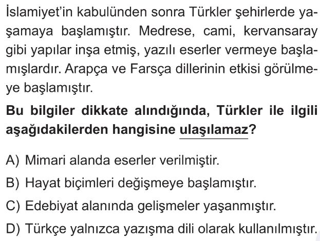 6. Sınıf İslamiyet'in Kabulüyle Türklerin Sosyal ve Kültürel Hayatlarında Meydana Gelen Değişimler Test 1