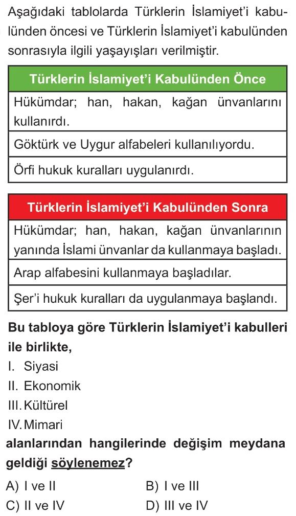 6. Sınıf İslamiyet'in Kabulüyle Türklerin Sosyal ve Kültürel Hayatlarında Meydana Gelen Değişimler Test 1