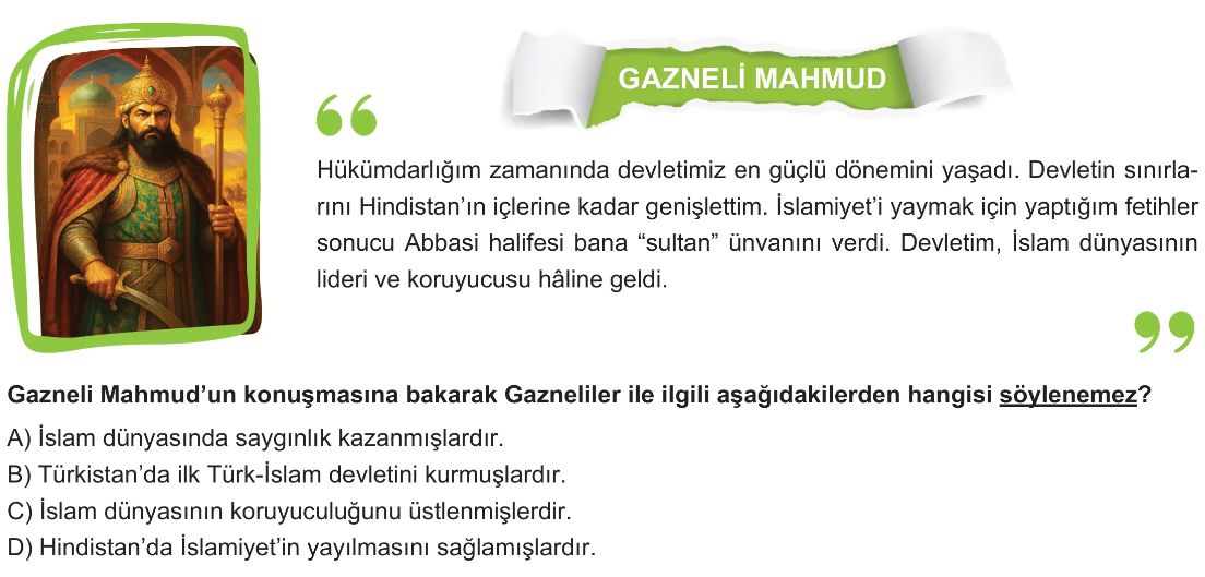 6. Sınıf İslamiyet'in Kabulüyle Türklerin Sosyal ve Kültürel Hayatlarında Meydana Gelen Değişimler Test 1