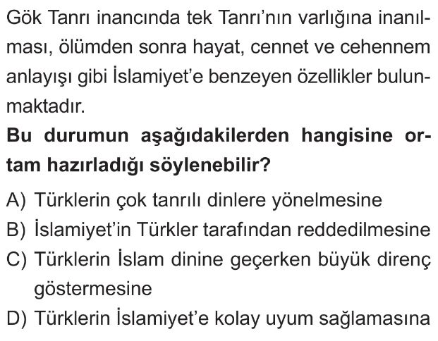 6. Sınıf İslamiyet'in Kabulüyle Türklerin Sosyal ve Kültürel Hayatlarında Meydana Gelen Değişimler Test 2