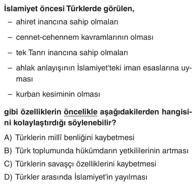 6. Sınıf İslamiyet'in Kabulüyle Türklerin Sosyal ve Kültürel Hayatlarında Meydana Gelen Değişimler Test 2