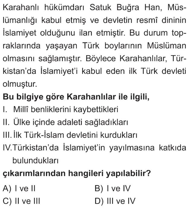 6. Sınıf İslamiyet'in Kabulüyle Türklerin Sosyal ve Kültürel Hayatlarında Meydana Gelen Değişimler Test 2
