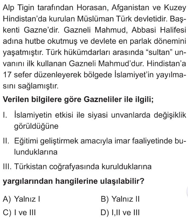 6. Sınıf İslamiyet'in Kabulüyle Türklerin Sosyal ve Kültürel Hayatlarında Meydana Gelen Değişimler Test 2