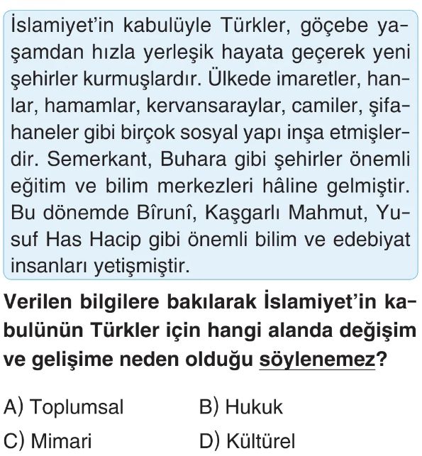 6. Sınıf İslamiyet'in Kabulüyle Türklerin Sosyal ve Kültürel Hayatlarında Meydana Gelen Değişimler Test 2