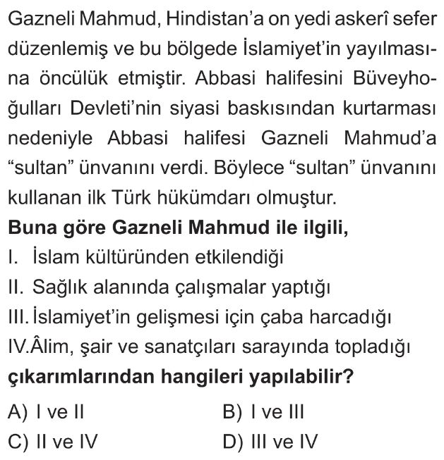 6. Sınıf İslamiyet'in Kabulüyle Türklerin Sosyal ve Kültürel Hayatlarında Meydana Gelen Değişimler Test 2
