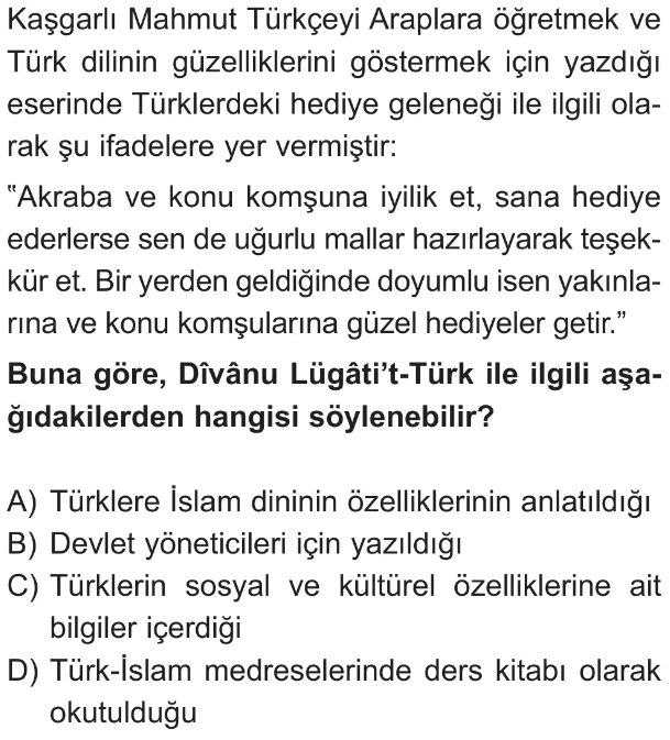 6. Sınıf İslamiyet'in Kabulüyle Türklerin Sosyal ve Kültürel Hayatlarında Meydana Gelen Değişimler Test 3