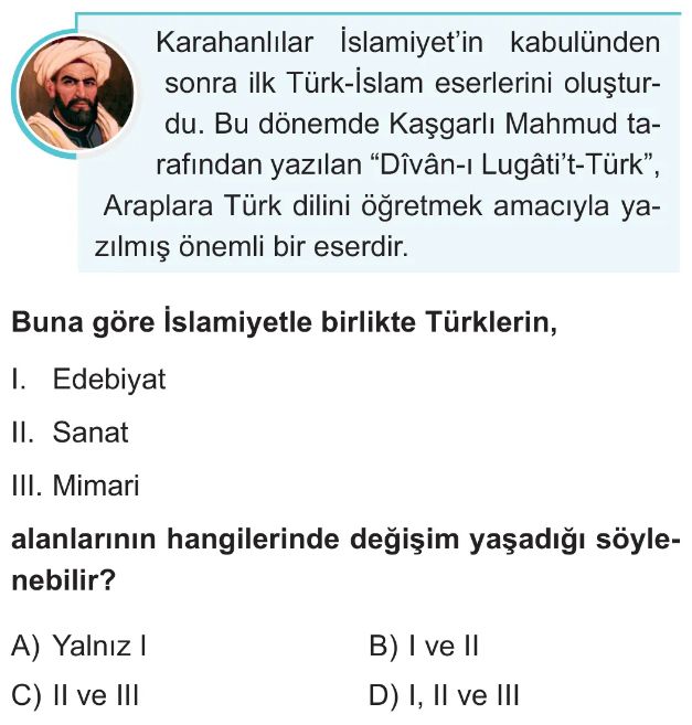 6. Sınıf İslamiyet'in Kabulüyle Türklerin Sosyal ve Kültürel Hayatlarında Meydana Gelen Değişimler Test 3