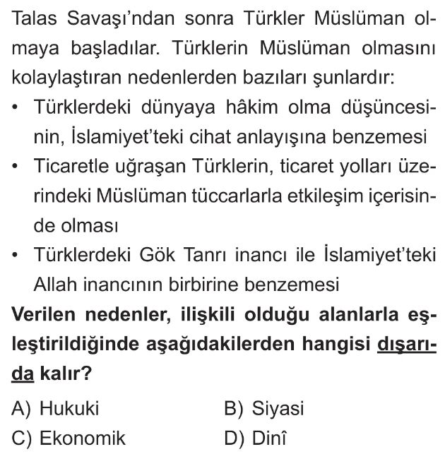 6. Sınıf İslamiyet'in Kabulüyle Türklerin Sosyal ve Kültürel Hayatlarında Meydana Gelen Değişimler Test 3