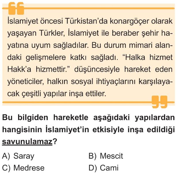 6. Sınıf İslamiyet'in Kabulüyle Türklerin Sosyal ve Kültürel Hayatlarında Meydana Gelen Değişimler Test 4