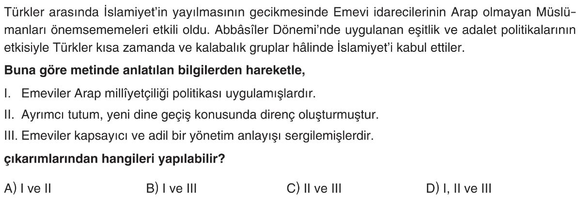 6. Sınıf İslamiyet'in Kabulüyle Türklerin Sosyal ve Kültürel Hayatlarında Meydana Gelen Değişimler Test 4