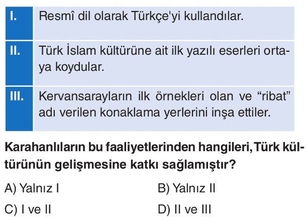 6. Sınıf İslamiyet'in Kabulüyle Türklerin Sosyal ve Kültürel Hayatlarında Meydana Gelen Değişimler Test 4
