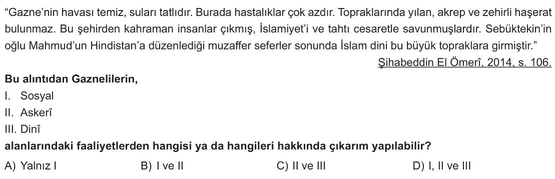 6. Sınıf İslamiyet'in Kabulüyle Türklerin Sosyal ve Kültürel Hayatlarında Meydana Gelen Değişimler Test 4
