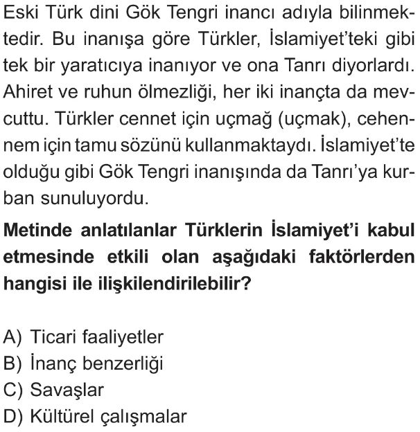 6. Sınıf İslamiyet'in Kabulüyle Türklerin Sosyal ve Kültürel Hayatlarında Meydana Gelen Değişimler Test 6