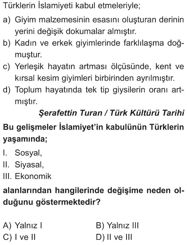 6. Sınıf İslamiyet'in Kabulüyle Türklerin Sosyal ve Kültürel Hayatlarında Meydana Gelen Değişimler Test 6
