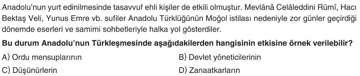 6. Sınıf XI-XIII. Yüzyıllar Arasında Meydana Gelen Askerî Mücadelelerin Anadolu'nun Türkleşmesi ve İslamlaşmasına Katkıları Test 1