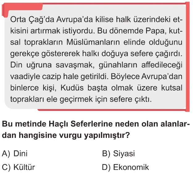 6. Sınıf XI-XIII. Yüzyıllar Arasında Meydana Gelen Askerî Mücadelelerin Anadolu'nun Türkleşmesi ve İslamlaşmasına Katkıları Test 1
