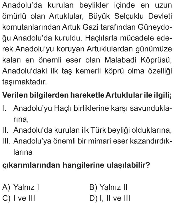 6. Sınıf XI-XIII. Yüzyıllar Arasında Meydana Gelen Askerî Mücadelelerin Anadolu'nun Türkleşmesi ve İslamlaşmasına Katkıları Test 2