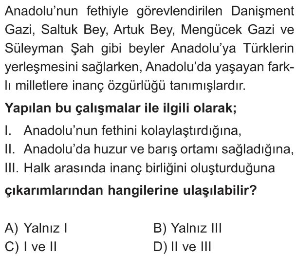 6. Sınıf XI-XIII. Yüzyıllar Arasında Meydana Gelen Askerî Mücadelelerin Anadolu'nun Türkleşmesi ve İslamlaşmasına Katkıları Test 3