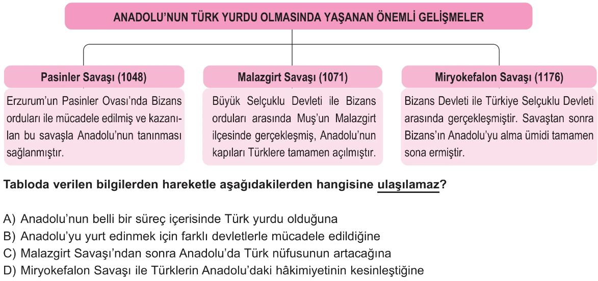 6. Sınıf XI-XIII. Yüzyıllar Arasında Meydana Gelen Askerî Mücadelelerin Anadolu'nun Türkleşmesi ve İslamlaşmasına Katkıları Test 3