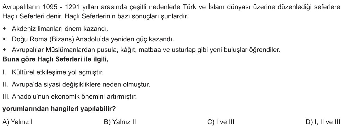 6. Sınıf XI-XIII. Yüzyıllar Arasında Meydana Gelen Askerî Mücadelelerin Anadolu'nun Türkleşmesi ve İslamlaşmasına Katkıları Test 4