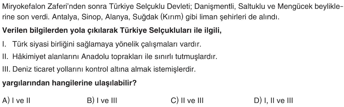 6. Sınıf XI-XIII. Yüzyıllar Arasında Meydana Gelen Askerî Mücadelelerin Anadolu'nun Türkleşmesi ve İslamlaşmasına Katkıları Test 4