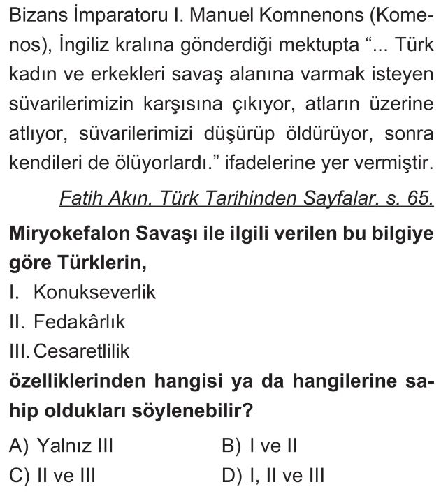 6. Sınıf XI-XIII. Yüzyıllar Arasında Meydana Gelen Askerî Mücadelelerin Anadolu'nun Türkleşmesi ve İslamlaşmasına Katkıları Test 5