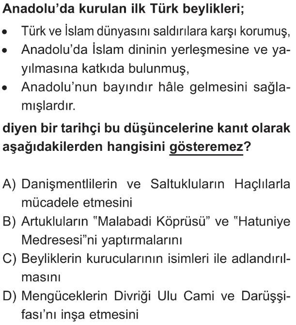 6. Sınıf XI-XIII. Yüzyıllar Arasında Meydana Gelen Askerî Mücadelelerin Anadolu'nun Türkleşmesi ve İslamlaşmasına Katkıları Test 6