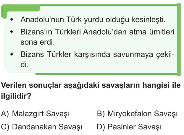 6. Sınıf XI-XIII. Yüzyıllar Arasında Meydana Gelen Askerî Mücadelelerin Anadolu'nun Türkleşmesi ve İslamlaşmasına Katkıları Test 6