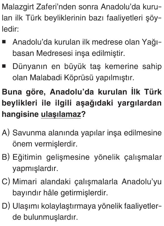 6. Sınıf XI-XIII. Yüzyıllar Arasında Meydana Gelen Askerî Mücadelelerin Anadolu'nun Türkleşmesi ve İslamlaşmasına Katkıları Test 7