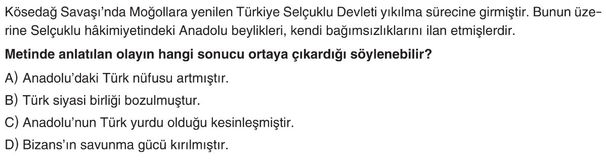6. Sınıf XI-XIII. Yüzyıllar Arasında Meydana Gelen Askerî Mücadelelerin Anadolu'nun Türkleşmesi ve İslamlaşmasına Katkıları Test 7