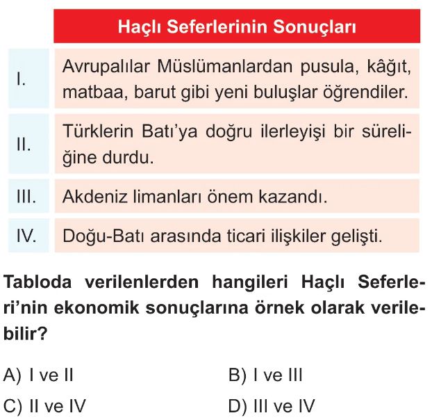 6. Sınıf XI-XIII. Yüzyıllar Arasında Meydana Gelen Askerî Mücadelelerin Anadolu'nun Türkleşmesi ve İslamlaşmasına Katkıları Test 7