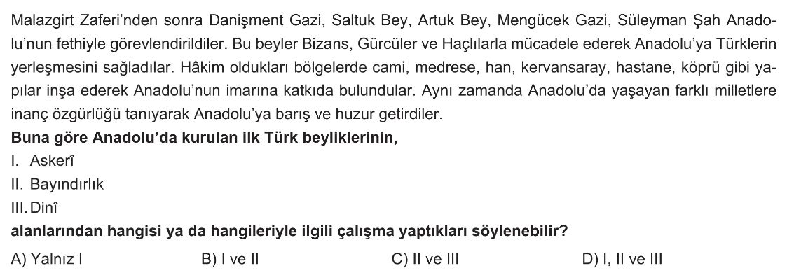 6. Sınıf XI-XIII. Yüzyıllar Arasında Meydana Gelen Askerî Mücadelelerin Anadolu'nun Türkleşmesi ve İslamlaşmasına Katkıları Test 7
