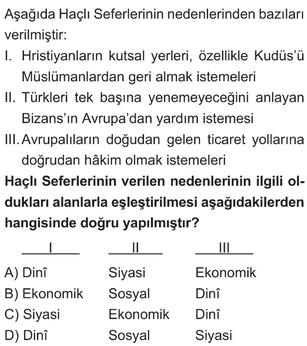 6. Sınıf Ortak Mirasımız Öğrenme Alanı Değerlendirme Test 3