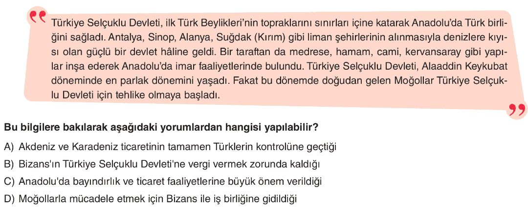 6. Sınıf Ortak Mirasımız Öğrenme Alanı Değerlendirme Test 4