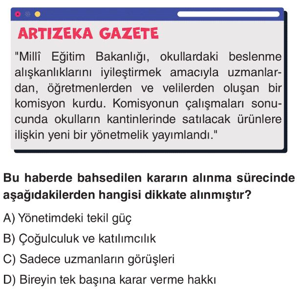 6. Sınıf Yönetimin Karar Alma Sürecini Etkileyen Unsurlar Test 1