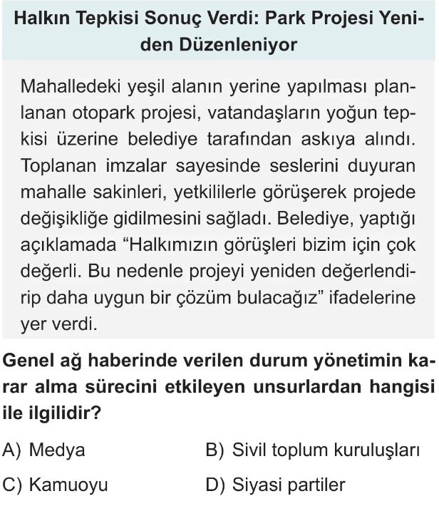 6. Sınıf Yönetimin Karar Alma Sürecini Etkileyen Unsurlar Test 3