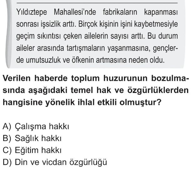 6. Sınıf Temel Hak Ve Sorumlulukların Toplumsal Düzenin Sürdürülmesindeki Önemi Test 2