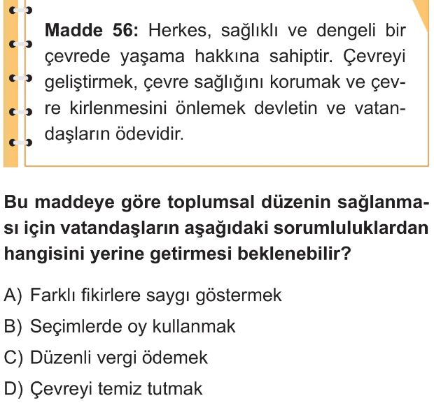 6. Sınıf Temel Hak Ve Sorumlulukların Toplumsal Düzenin Sürdürülmesindeki Önemi Test 3