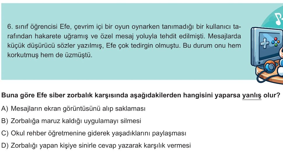 6. Sınıf Dijitalleşme Ve Teknolojik Gelişmelerin Vatandaşlık Hak Ve Sorumluluklarına Etkileri Test 2