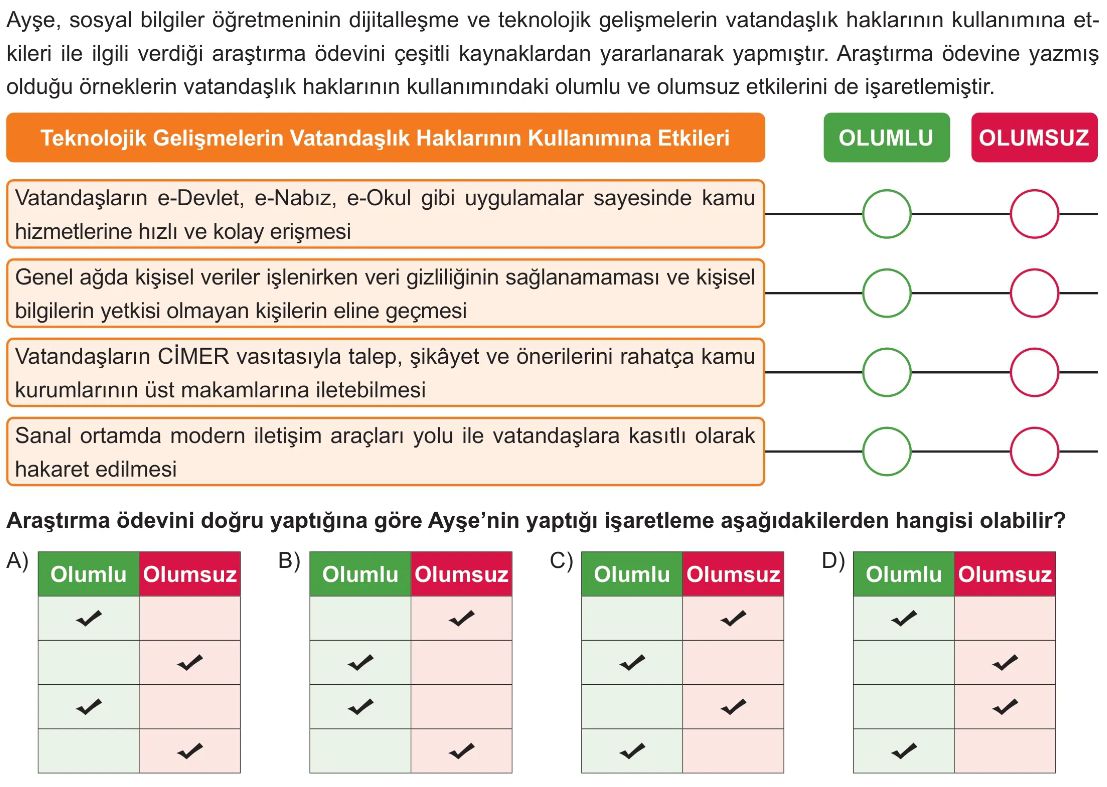 6. Sınıf Dijitalleşme Ve Teknolojik Gelişmelerin Vatandaşlık Hak Ve Sorumluluklarına Etkileri Test 2